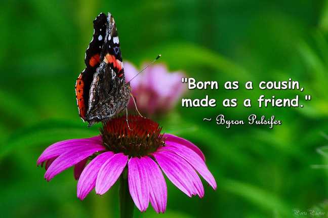 Porte Photos’ Daily Pic: Thursday, July 24th, 2025 – Cousins Day Posted on July 24, 2025 by Porte Photos “Born as a cousin, made as a friend.” ~ Byron Pulsifer Canadian Author Share this: Click to share on X (Opens in new window) X Click to share on Facebook (Opens in new window) Facebook Like Loading...