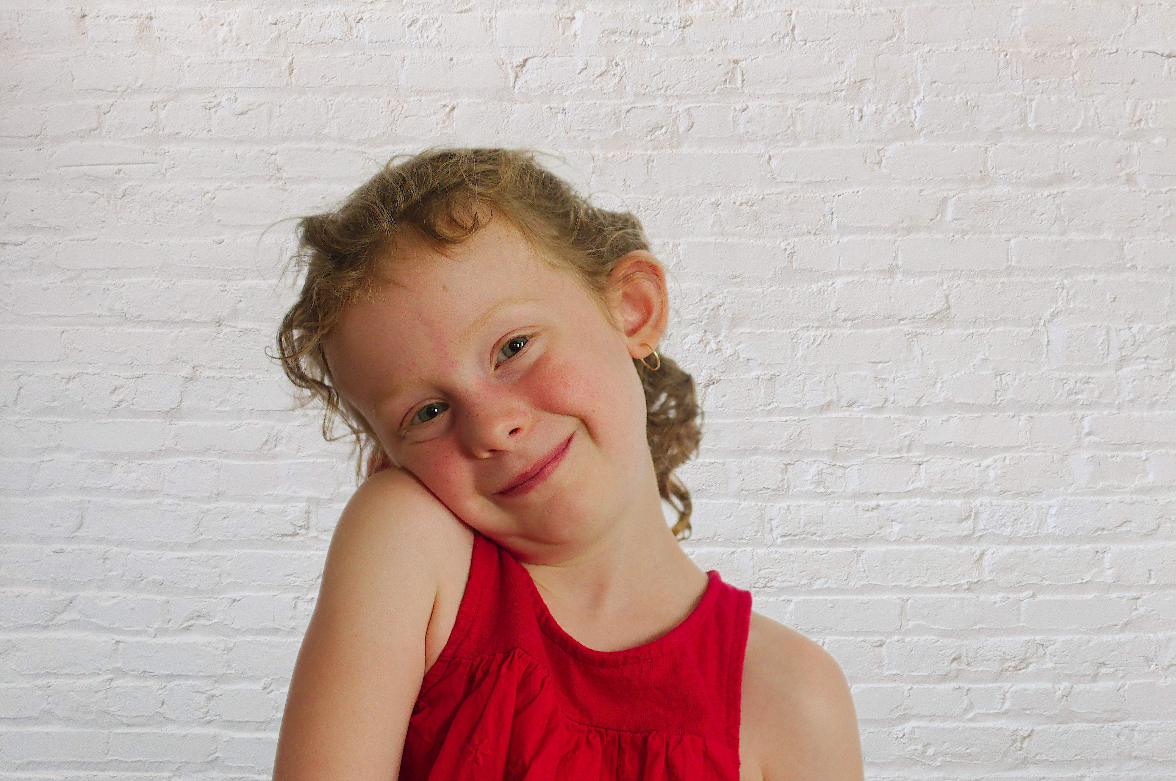 I had the opportunity to do some head shots yesterday. In preparation I took these photos of my granddaughter and grandson. The white background is an excellent choice for pictures to be used on business cards. It also enables the easy background replacement for white brick wall.